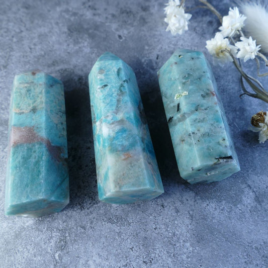 Amazonite with Smoky Quartz Tower | Balance, Protection & Growth