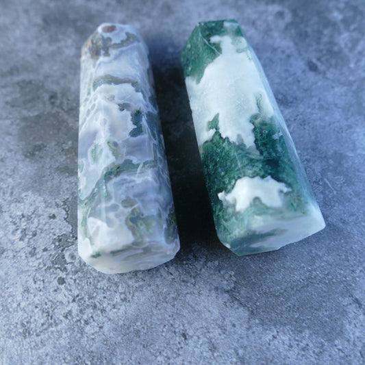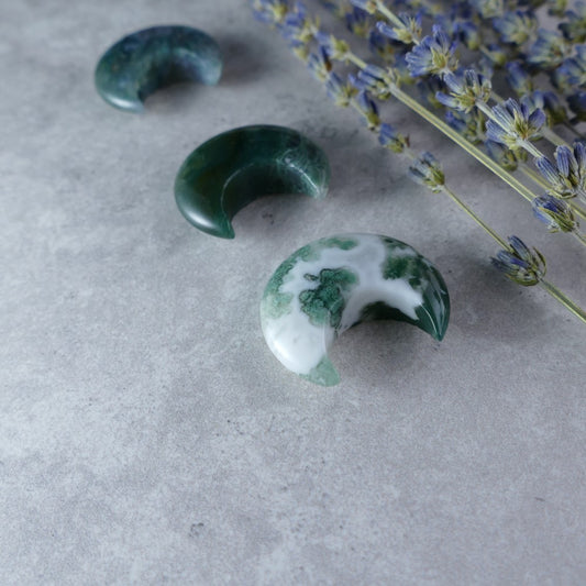 Moss Agate Moon Carvings (3cm) | Balance, Calm, Nature