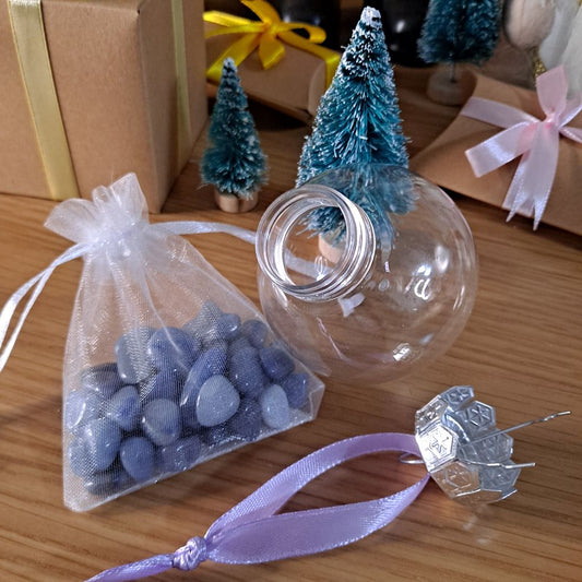 Blue Aventurine Christmas Ornament – 60mm Bauble with Crystal Chips