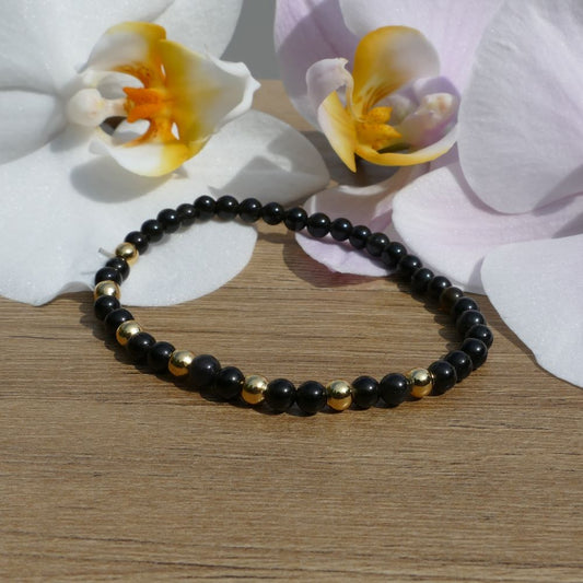 Black Obsidian Bracelet (Gold Accents) | Protection, Strength & Style